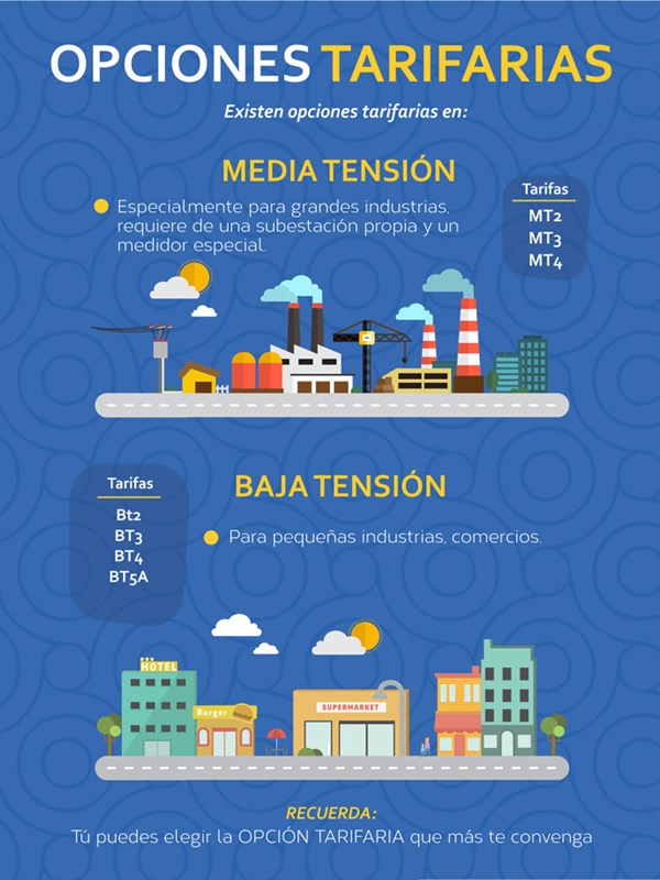 - Su punto de entrega puede ser en Baja Tensión, Media Tensión, Alta Tensión.