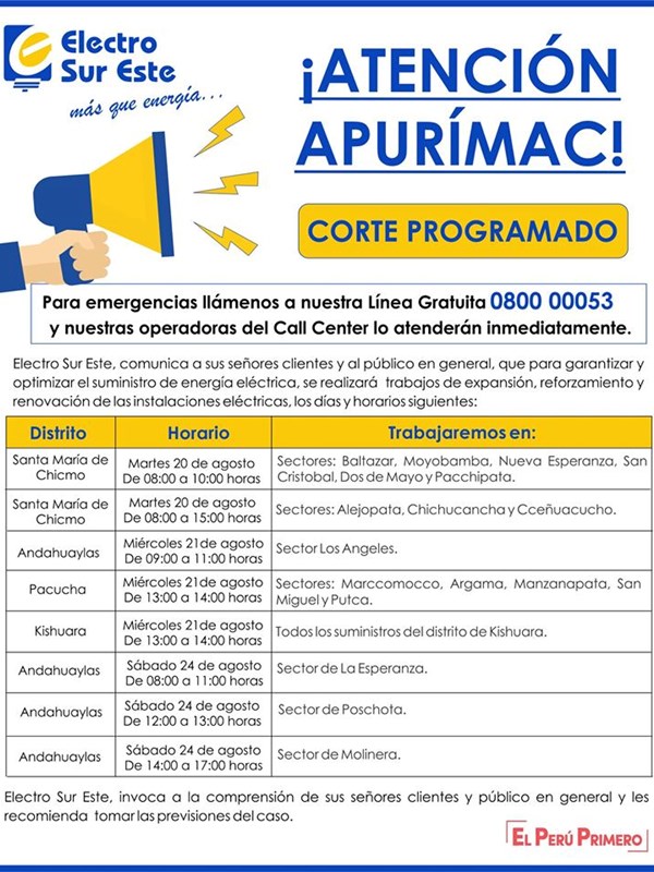 COMUNICADO DE CORTE DE ENERGIA DEL 20 AL 24 DE AGOSTO - APURÍMAC