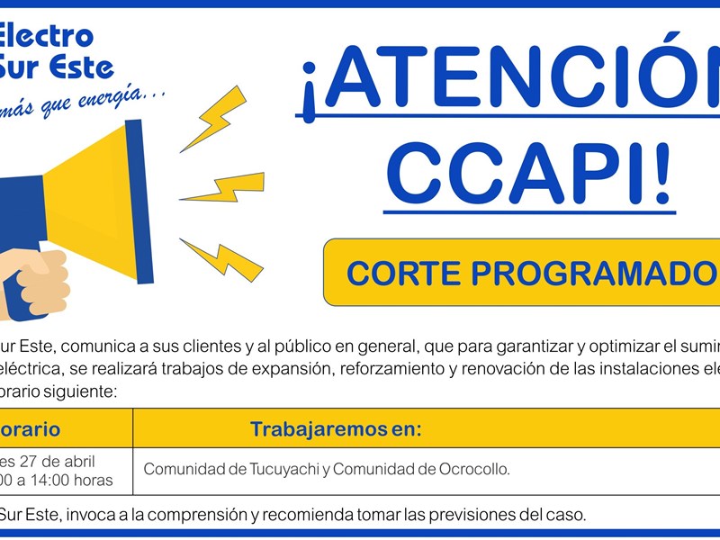 COMUNICADO - CORTE PROGRAMADO DÍA 27 DE ABRIL - CCAPI