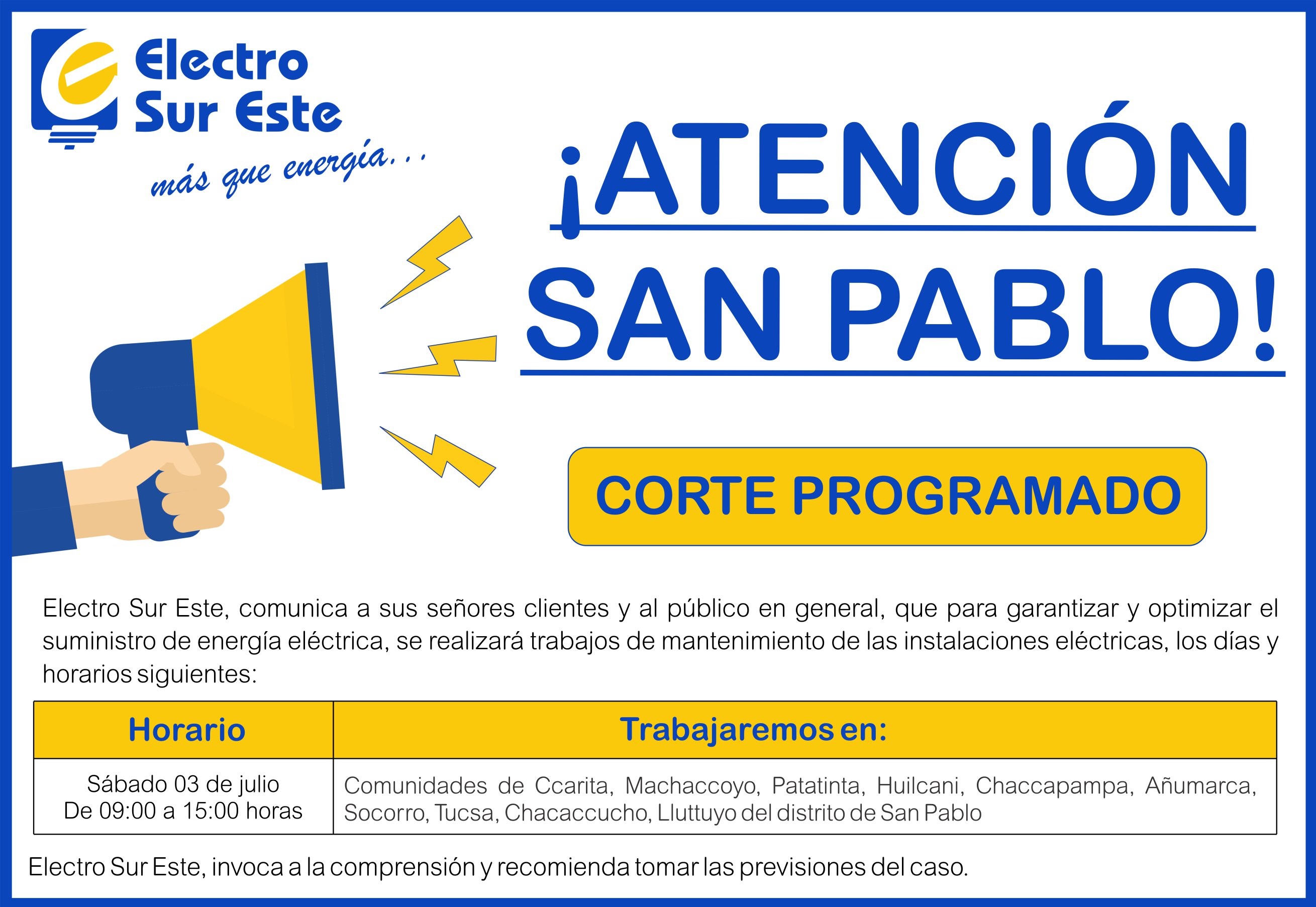 COMUNICADO - CORTE PROGRAMADO DÍA 03 DE JULIO - SAN PABLO