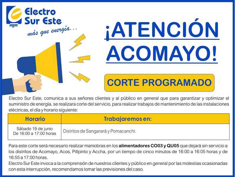 COMUNICADO - CORTE PROGRAMADO DÍA 19 DE JUNIO - ACOMAYO (1)