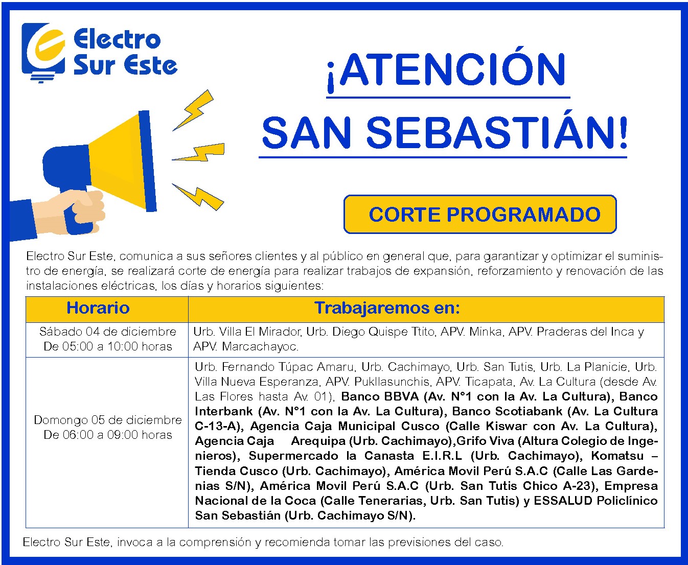 COMUNICADO - CORTE PROGRAMADO DIAS 04 Y 05 DE DICIEMBRE - CUSCO