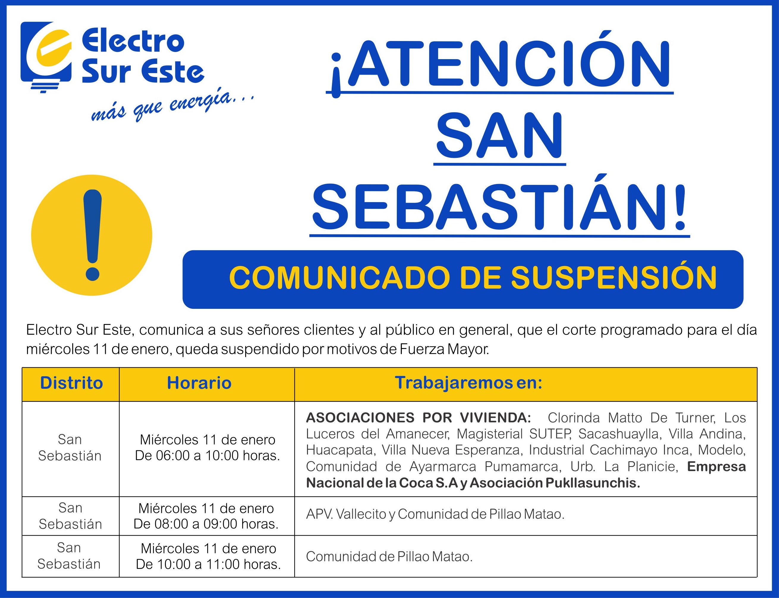COMUNICADO - SUSPENSIÓN DE CORTE DÍA MIÉRCOLES 11 DE ENERO - SAN SEBASTIÁN