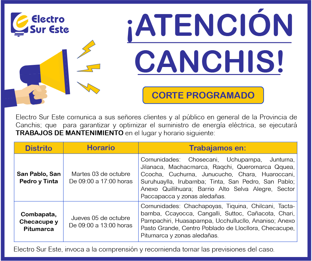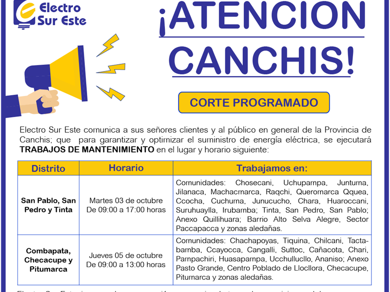 COMUNICADO - CORTE PROGRAMADO DIAS 03 Y 05 DE OCTUBRE - CANCHIS
