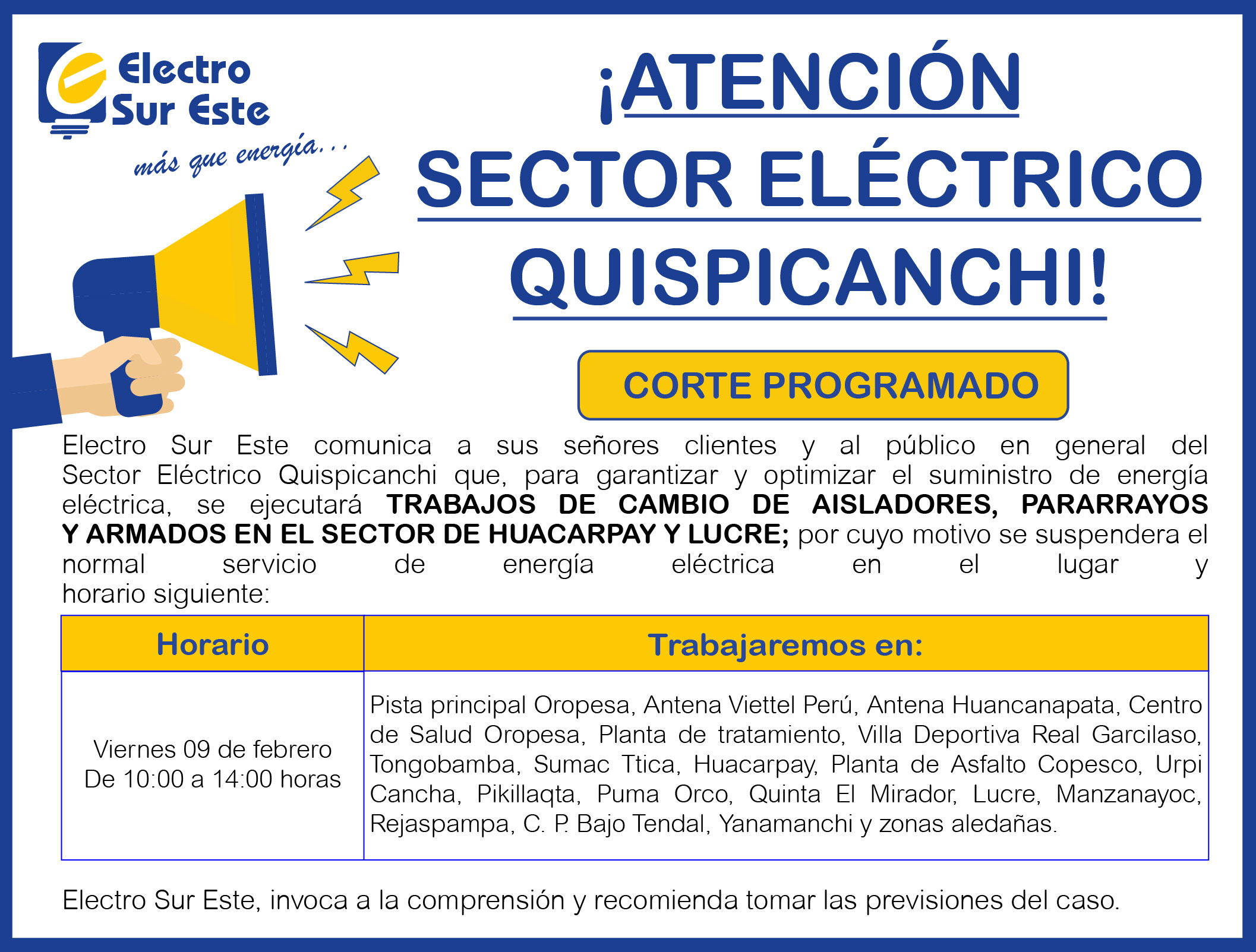 COMUNICADO - CORTE PROGRAMADO DÍA VIERNES 09 DE FEBRERO - SECTOR ELÉCTRICO QUISPICANCHI