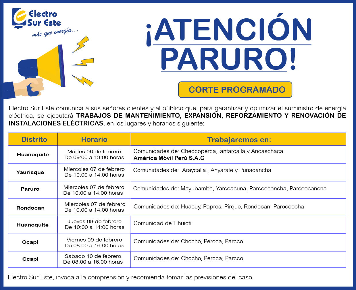 COMUNICADO - CORTE PROGRAMADO DÍAS 06, 07, 08, 09 Y 10 DE FEBRERO- CUSCO