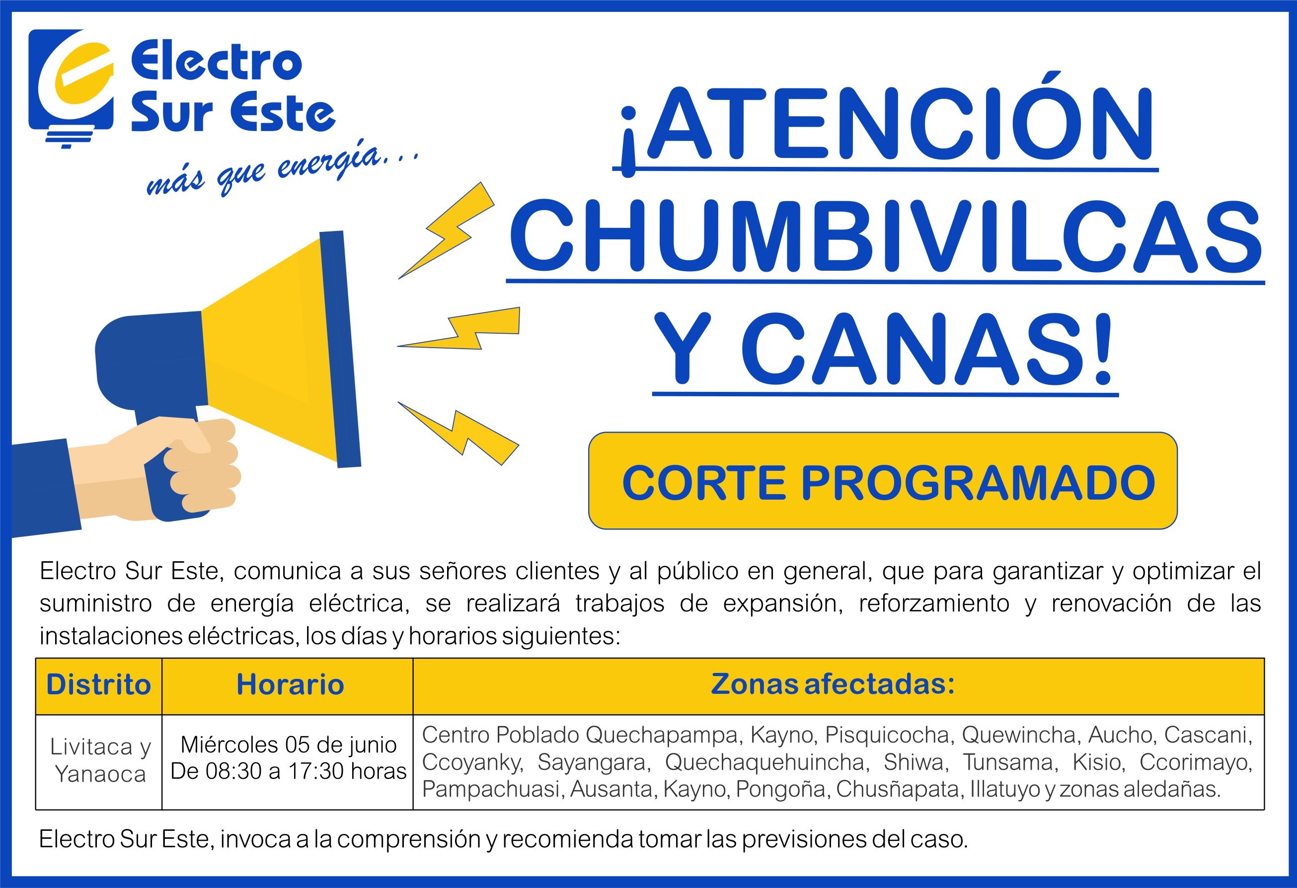 COMUNICADO - CORTE PROGRAMADO MIÉRCOLES 05 DE JUNIO - CHUMBIVILCAS Y CANAS - LIVITACA Y YANAOCA