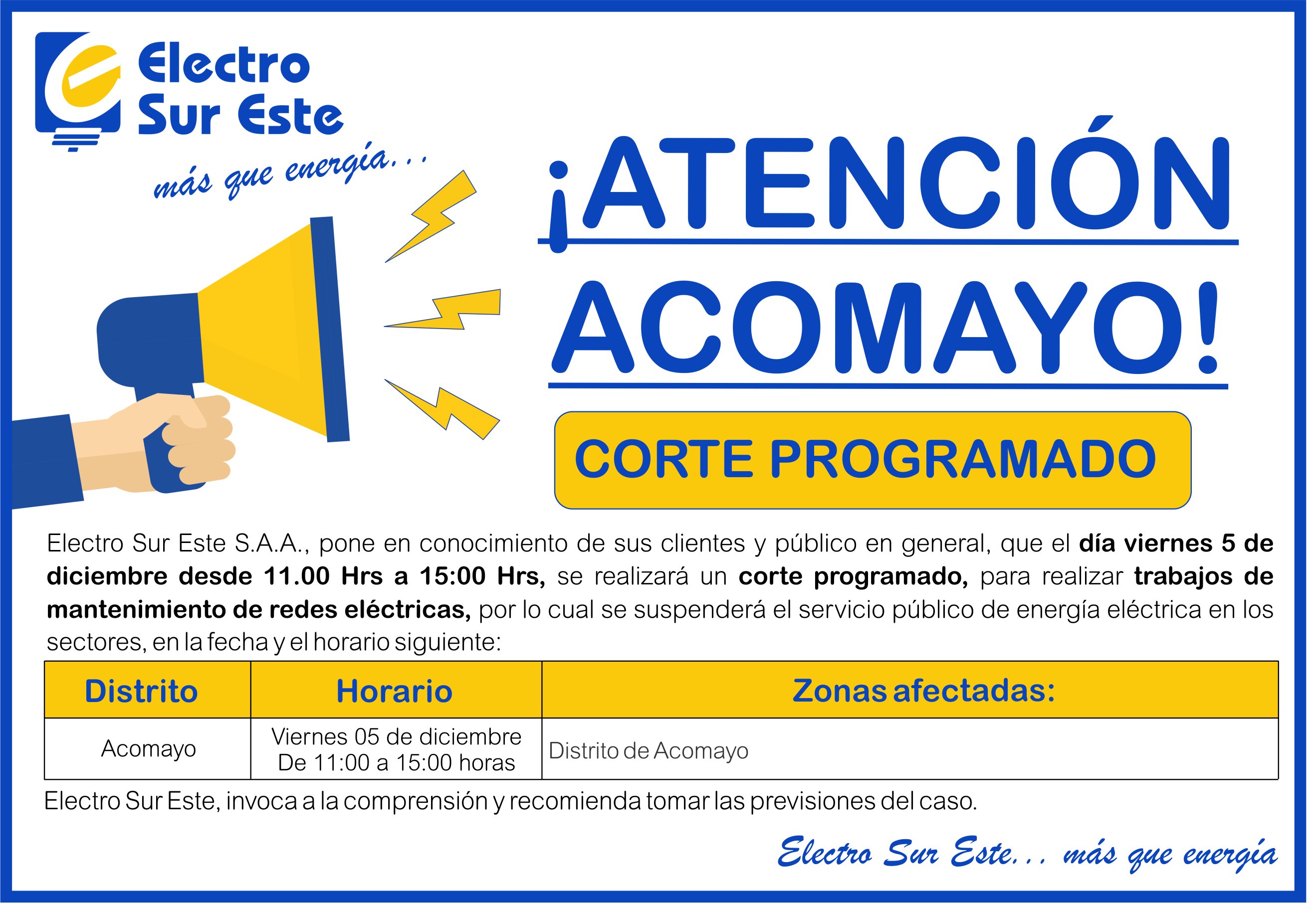 COMUNICADO - CORTE PROGRAMADO DÍA VIERNES 05 DE DICIEMBRE - ACOMAYO