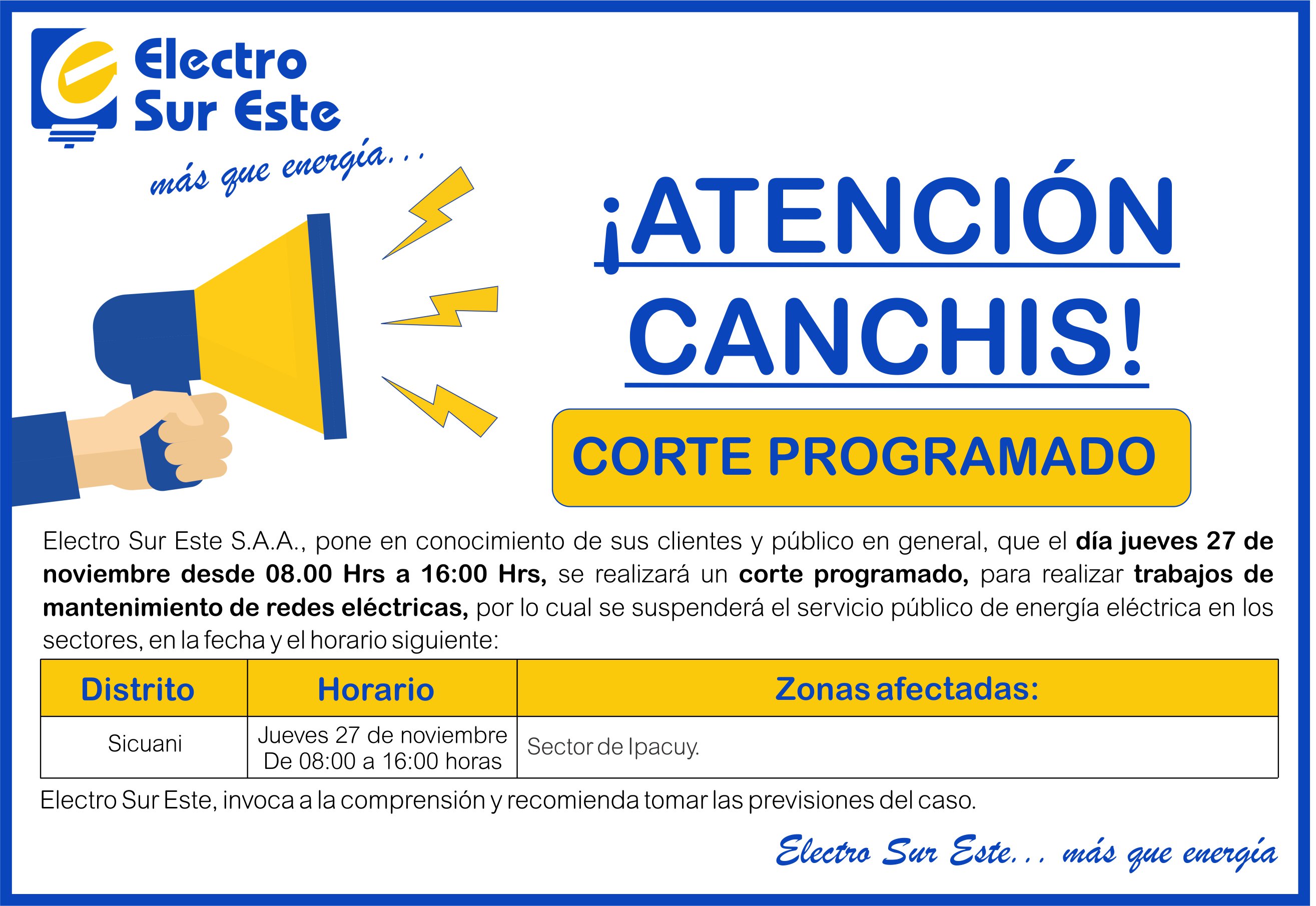 COMUNICADO - CORTE PROGRAMADO DÍA JUEVES 27 DE NOVIEMBRE - CANCHIS