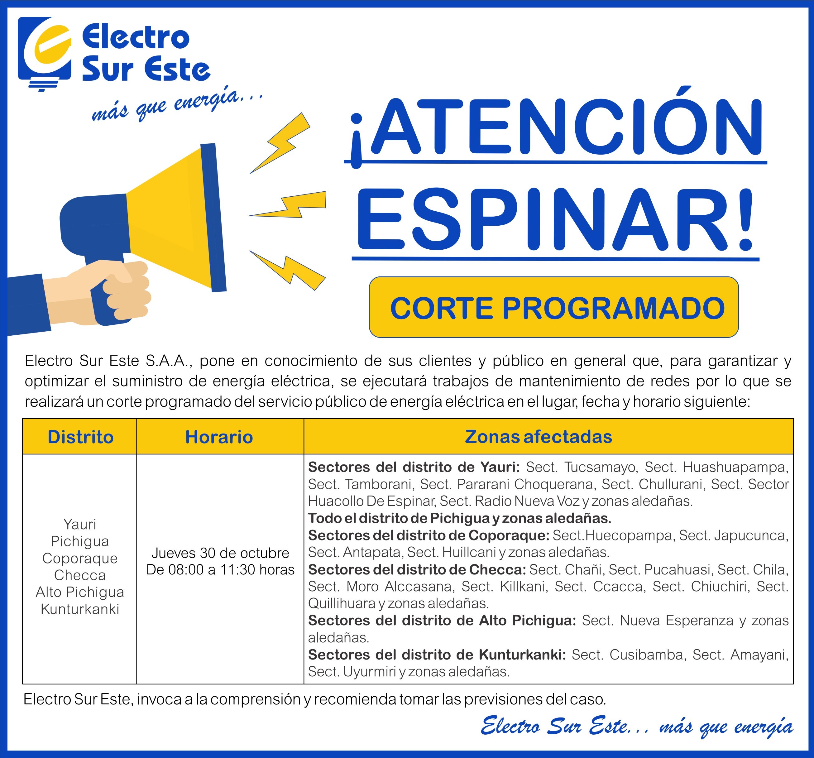 COMUNICADO - CORTE PROGRAMADO DÍA JUEVES 30 DE OCTUBRE - ESPINAR