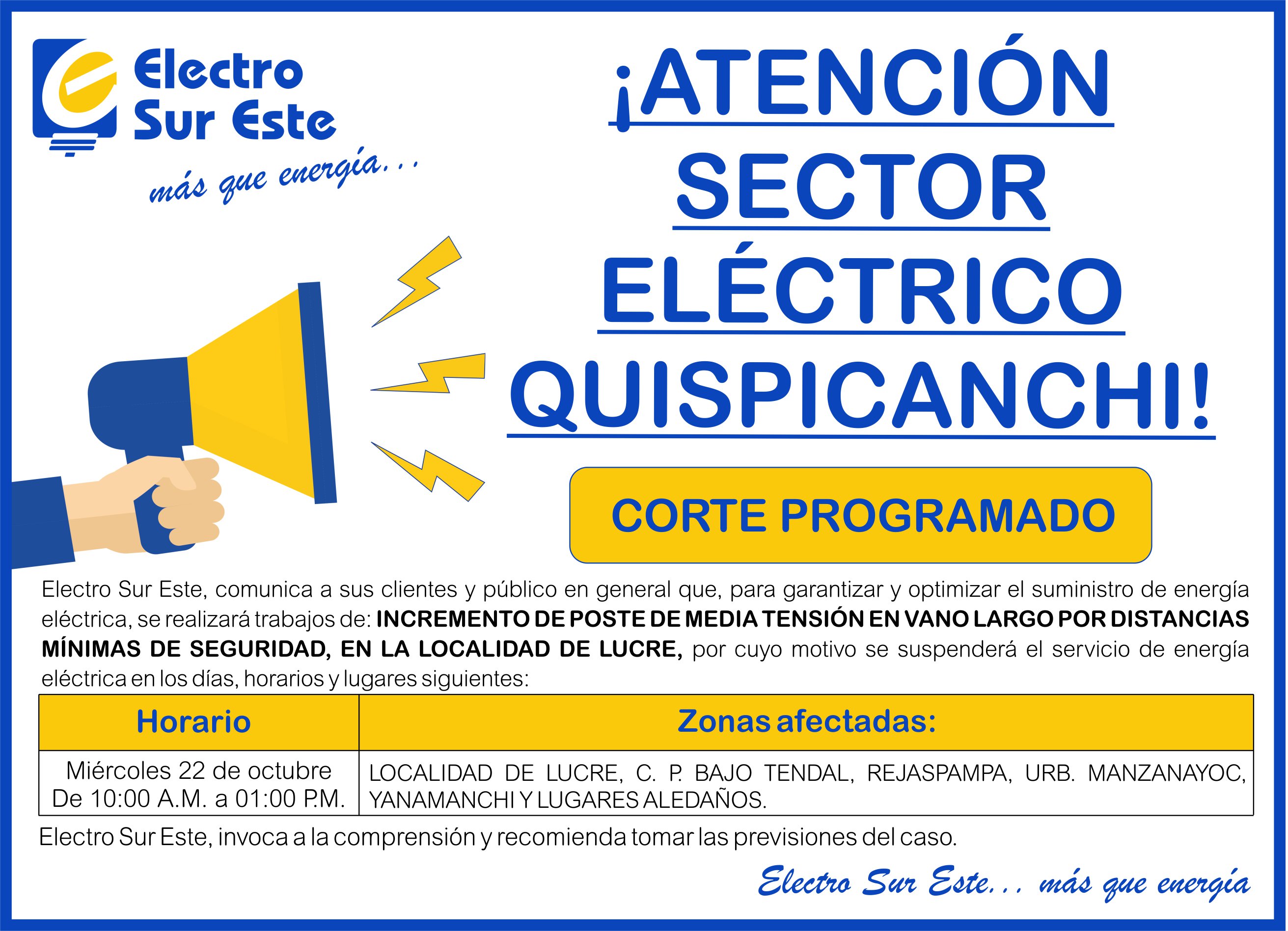 COMUNICADO - CORTE PROGRAMADO DÍA MIÉRCOLES 22 DE OCTUBRE - QUISPICANCHI