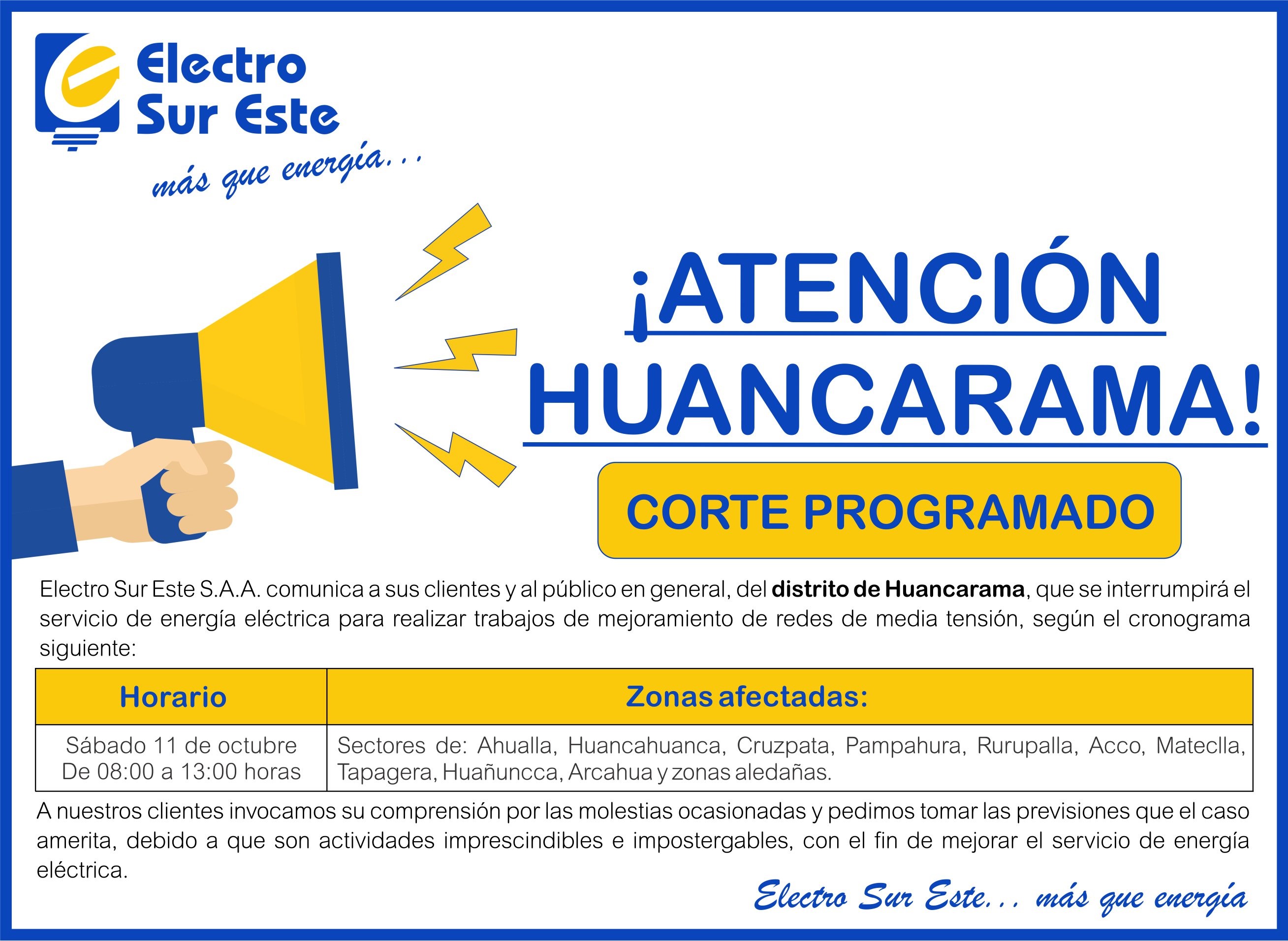 COMUNICADO - CORTE PROGRAMADO DÍA SÁBADO 11 DE OCTUBRE - HUANCARAMA
