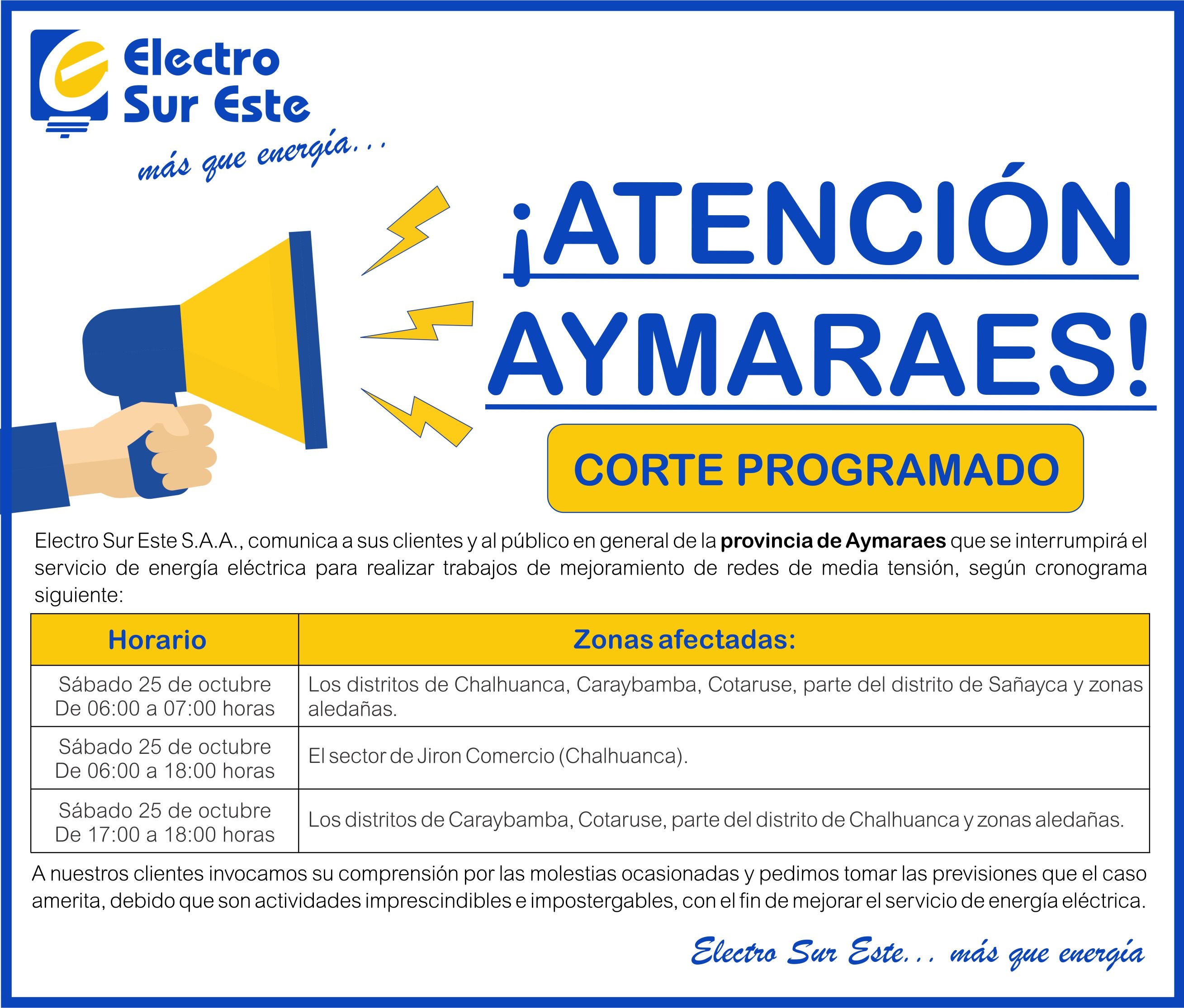 COMUNICADO - CORTE PROGRAMADO DÍA SÁBADO 25 DE OCTUBRE - AYMARAES