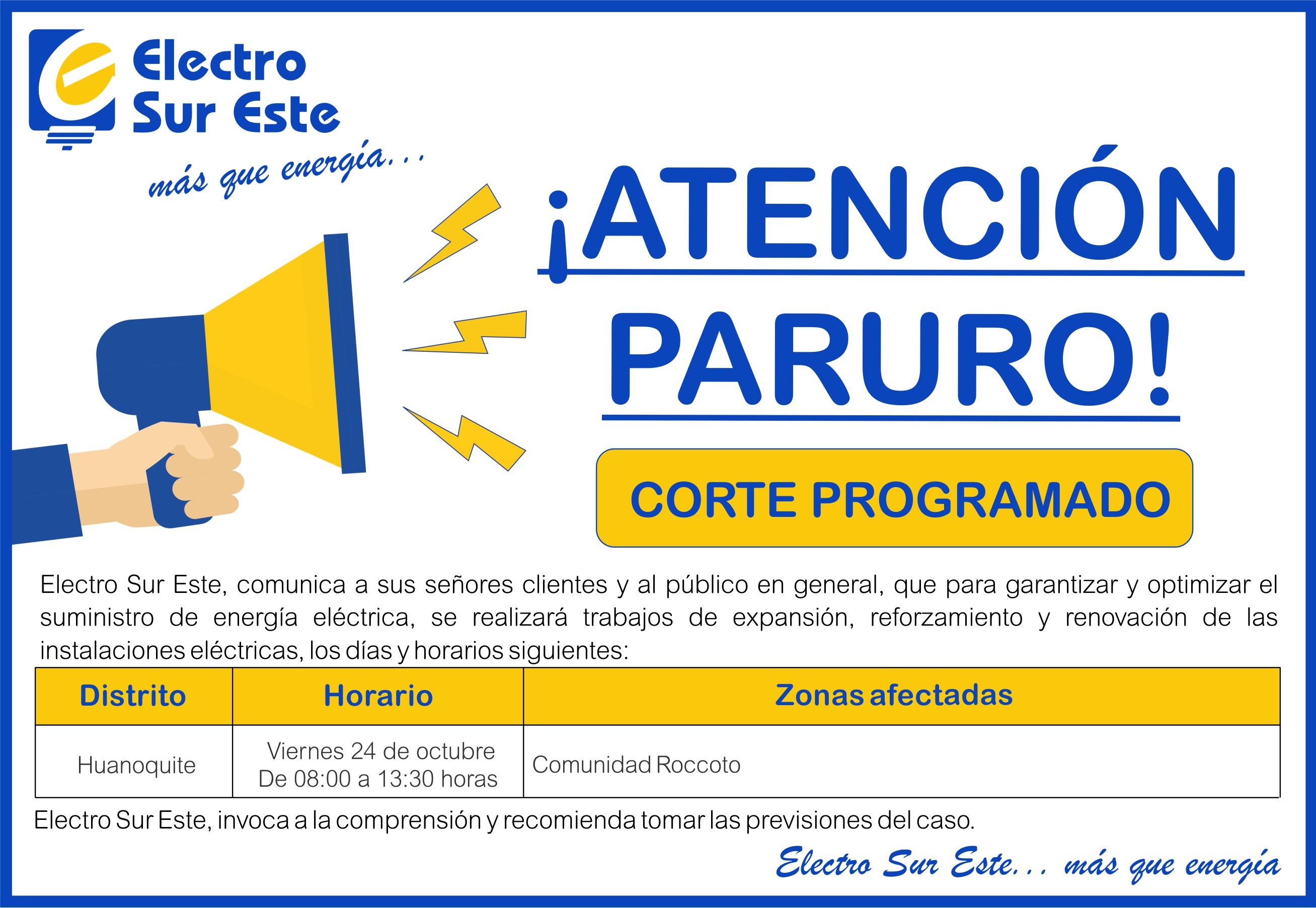 COMUNICADO - CORTE PROGRAMADO DÍA VIERNES 24 DE OCTUBRE - PARURO