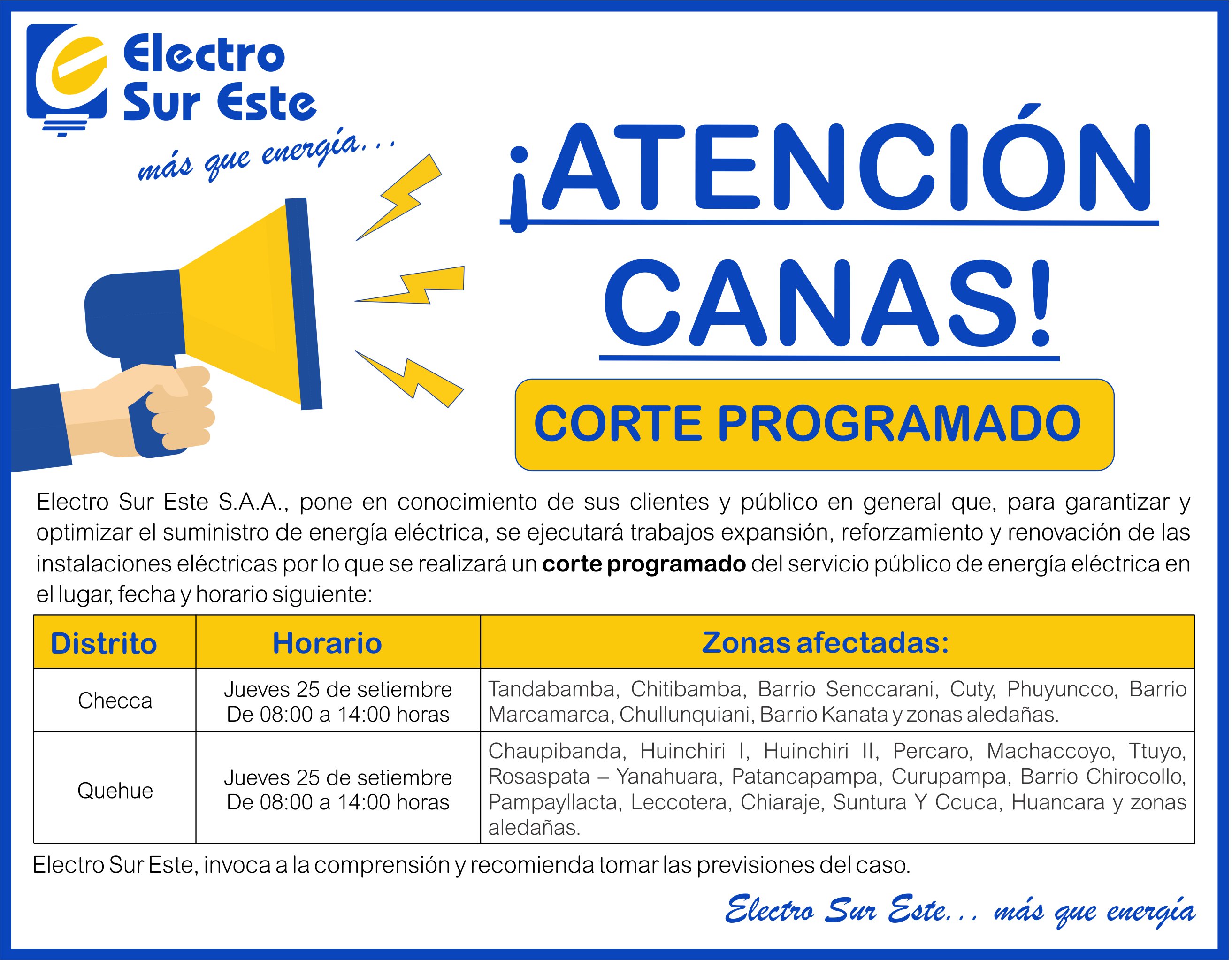 COMUNICADO - CORTE PROGRAMADO DÍA JUEVES 25 DE SETIEMBRE - CANAS