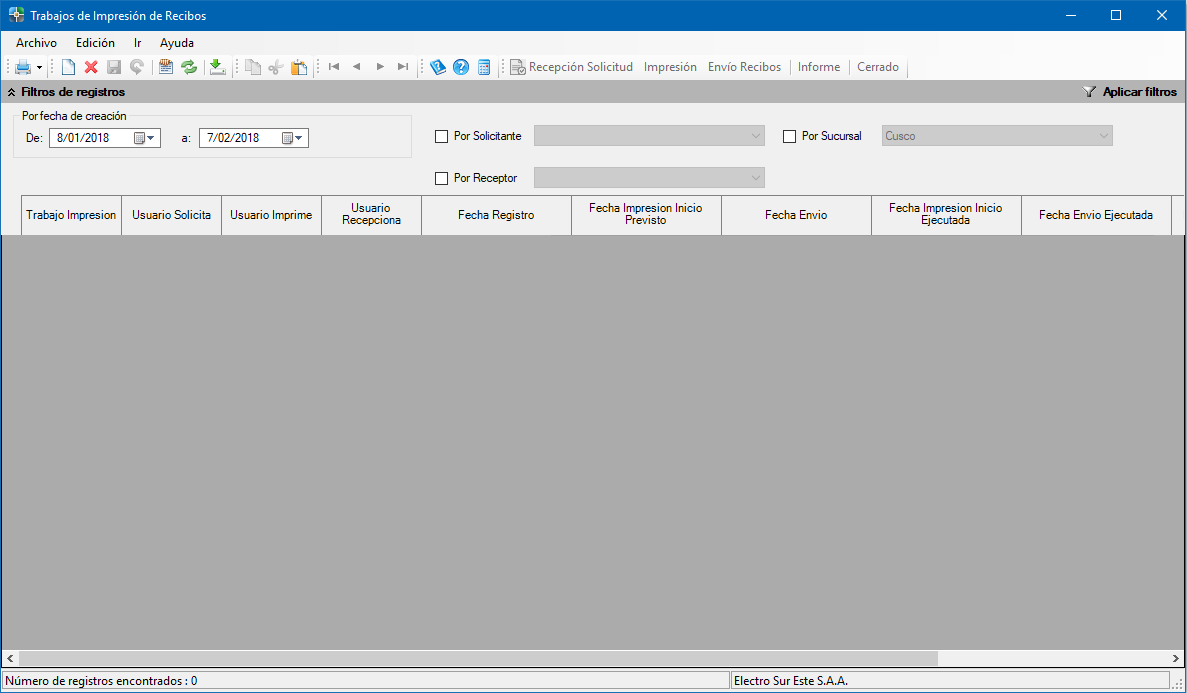 El módulo de valorización de impresión de recibos nos permite registrar los trabajos de impresión de recibos solicitados a la empresa encargada, así como controlar los tiempos de entrega de los pedidos solicitados.